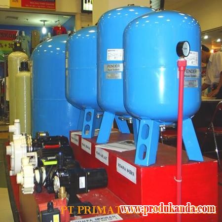 Water Pressure tank pada prinsipnya berguna untuk menstabilkan tekanan air pada kran. Di dalam pressure tank biasanya terdapat membran yang berfungsi untuk menjaga daya tahan Pressure Switch karena pada saat air terpakai sedikit, pompa tidak perlu bekerja dan Pressure Siwtch tidak perlu bekerja sehingga menjaga daya tahan pressure switch.